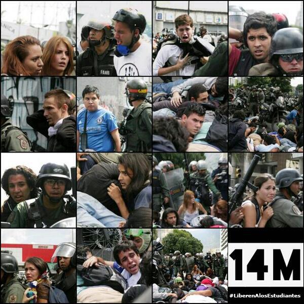 El miércoles hemos visto las imágenes de otros 105 manifestantes pacíficos, apresados en Caracas, parte de una multitudinaria marcha de miles de jóvenes, aplastados por soldados cuando trataban de acercarse a la sede de las Naciones Unidas para entregar un documento.