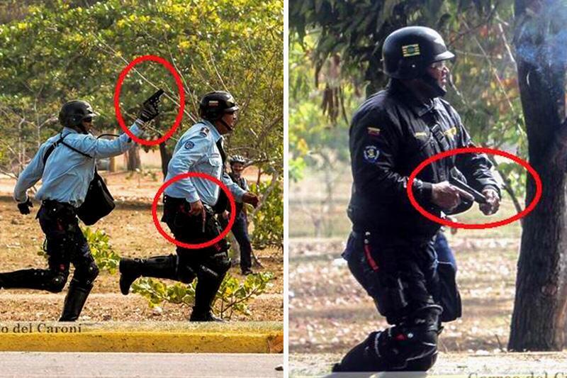 | Horas antes de ser humillada en Puerto Ordaz, la Policía del Estado Bolívar exhibió la efectividad de sus pistolas, disparando en la Facultad de Medicina/FOTO vía twitter:@AnonymousDarkw |