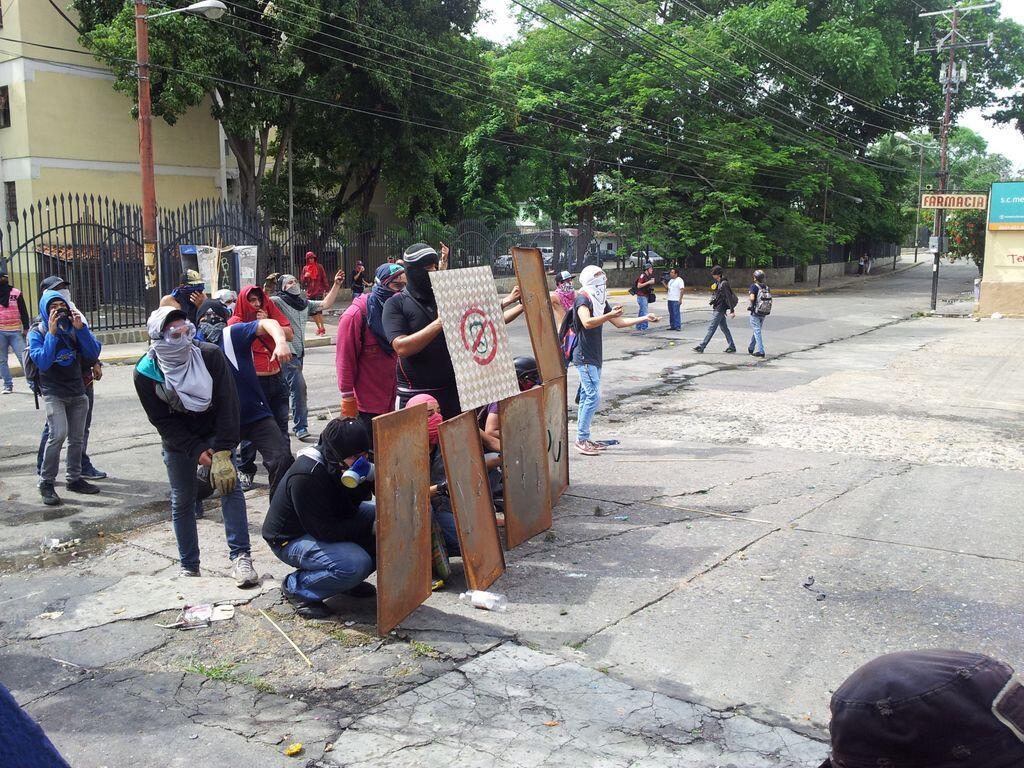 Jóvenes patriotas en Avenida Bolívar, con improvisados